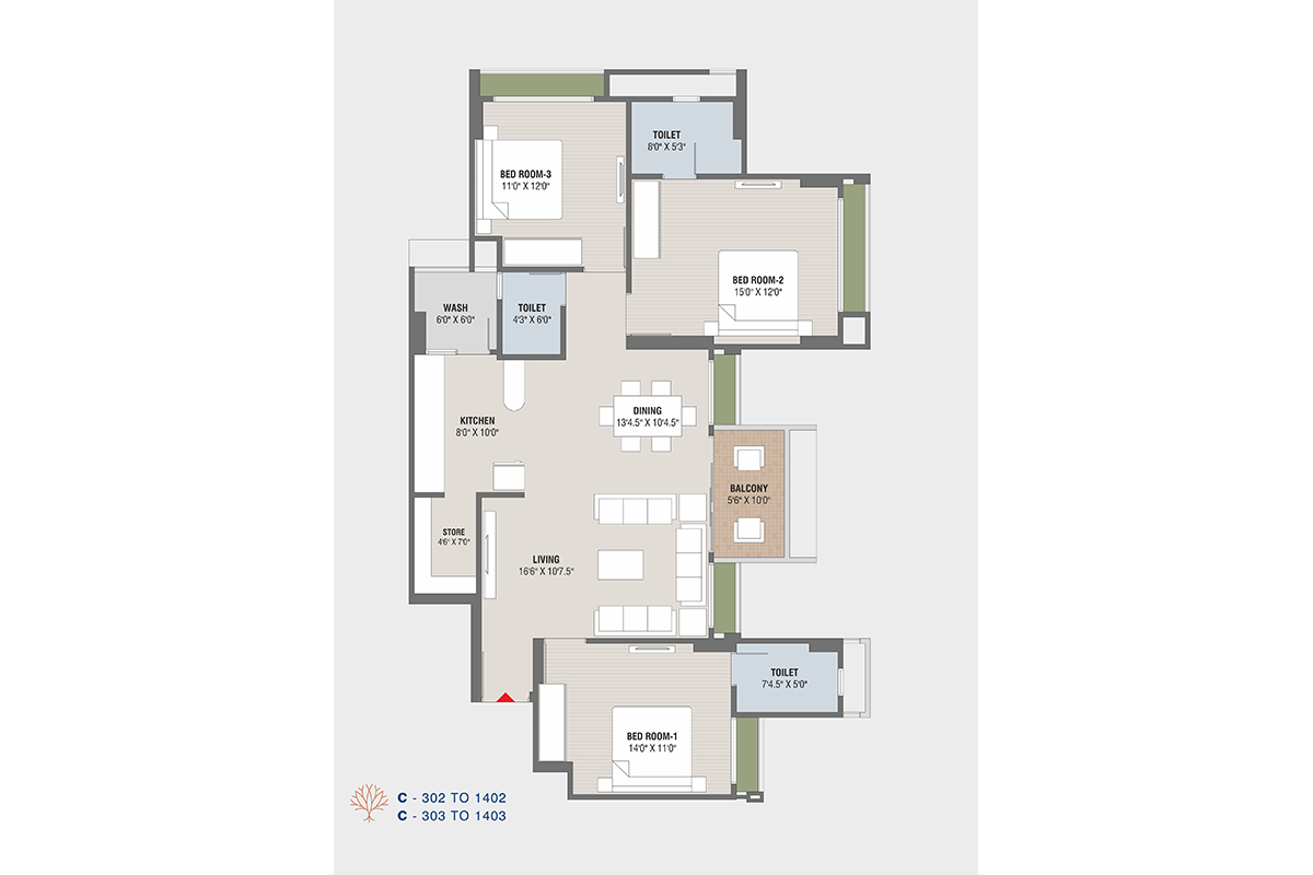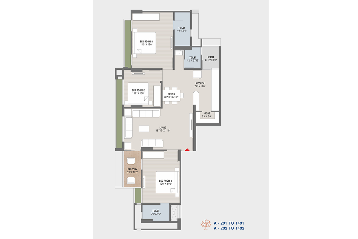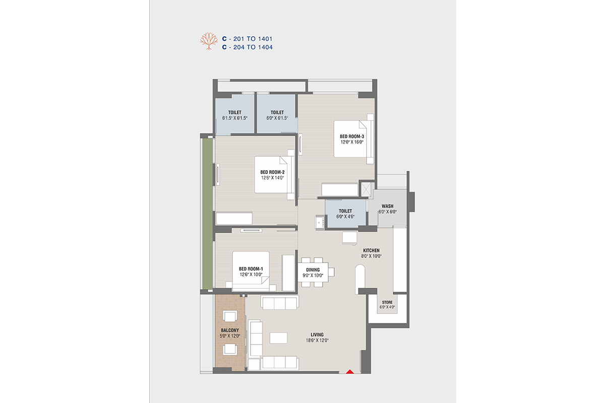 • Flat Size 166 sqyrd/ 239 sqyrd/ 271 sqyrd